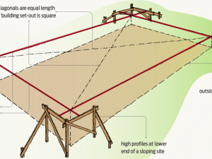 Setting out a building is a process of transferring an architectural drawing on an actual site or ground.
